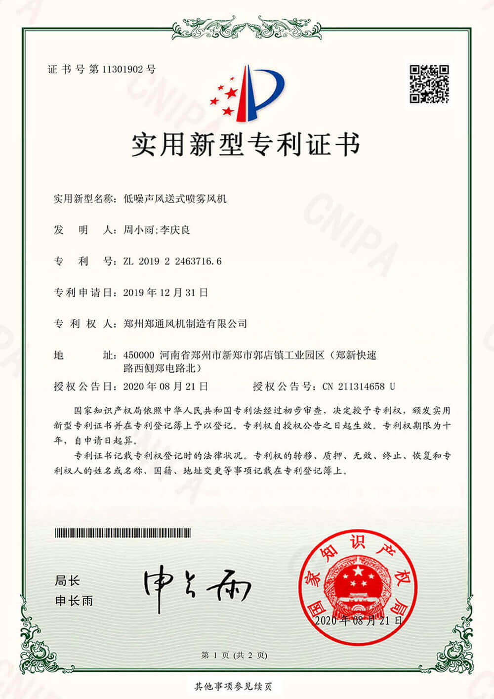鄭通風機主要產品包括:高壓風機、不銹鋼風機、消防排煙風機、防腐防爆風機、廚房排油煙風機、玻璃鋼風機、鍋爐引風機、軸流風機、柜式離心風機、鍋爐引風機,產品通過ISO9001、ISO14001、ISO45001國際標準化組織制定的質量管理體系認證,部分產品通過了3C認證和國家防爆電器產品質量監督檢驗中心認證。